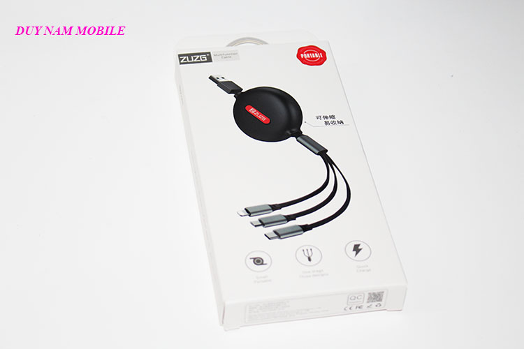 Cáp sạc 3 trong 1 ZUZG rút gọn