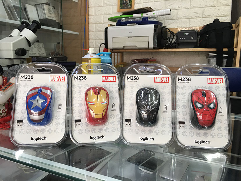 Chắc hẳn các bạn đã biết bộ phim vũ trụ điện ảnh Marvel với những siêu anh hùng có những năng lượng siêu phầm giải cứu thế giới khỏi bóng lực bóng tối . Nay vũ trụ điện ảnh nằm gọn trong lòng tay bạn , Logitech đã đưa bộ sưu tập vũ trụ điện ảnh vào mẫu chuột không dây của mình , sản phẩm mang tên chuột không dây logitech marvel M238 được thiết kế dựa theo 4 hình ảnh nhân vật anh hùng Avengers : Spider man , Iron man , Captain America , Black Panther.