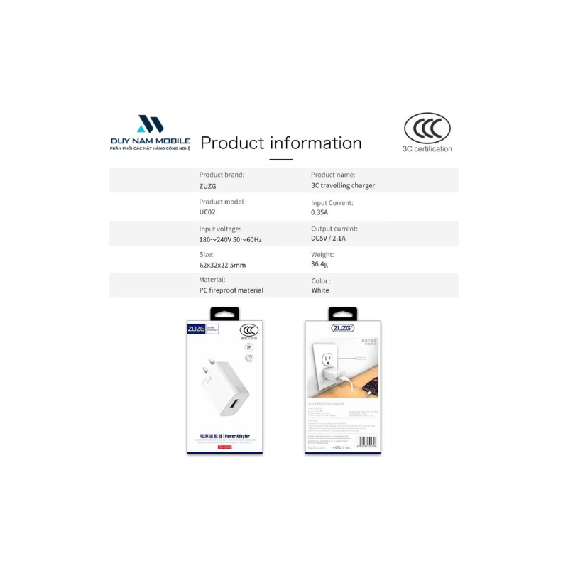 Củ sạc 5V-2.1A ZUZG UC02