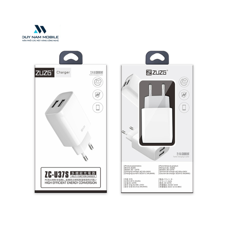 Củ sạc 5V-2.4A ra 2 cổng USB ZUZG U37S