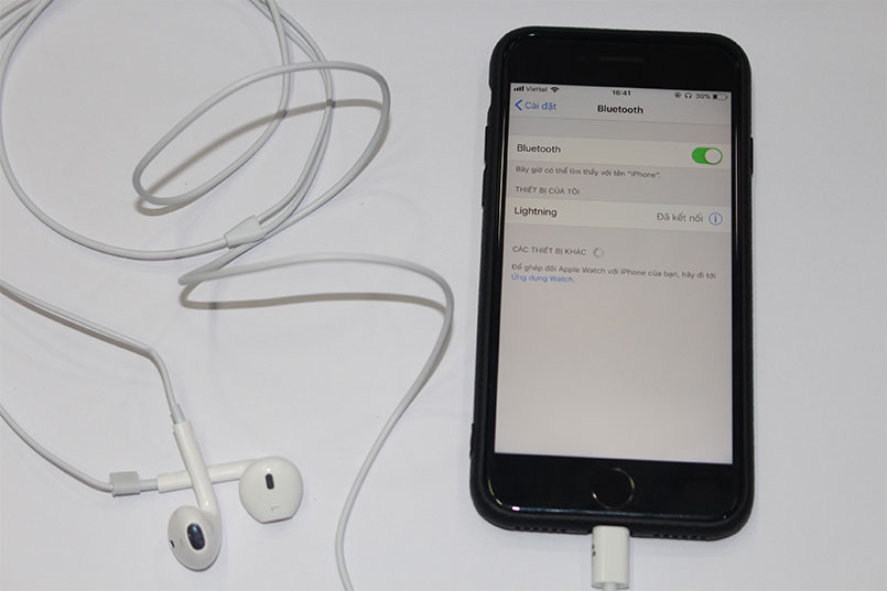 => Còn tai nghe iPhone linh kiện giá thành rẻ sẽ không tích hợp được Chip chính hãng nên khi cắm vào cổng lighting máy sẽ không nhận tai nghe vì vậy để sử dụng được tai nghe các bạn cần mở bluetooth trên máy và kết nối với tai nghe